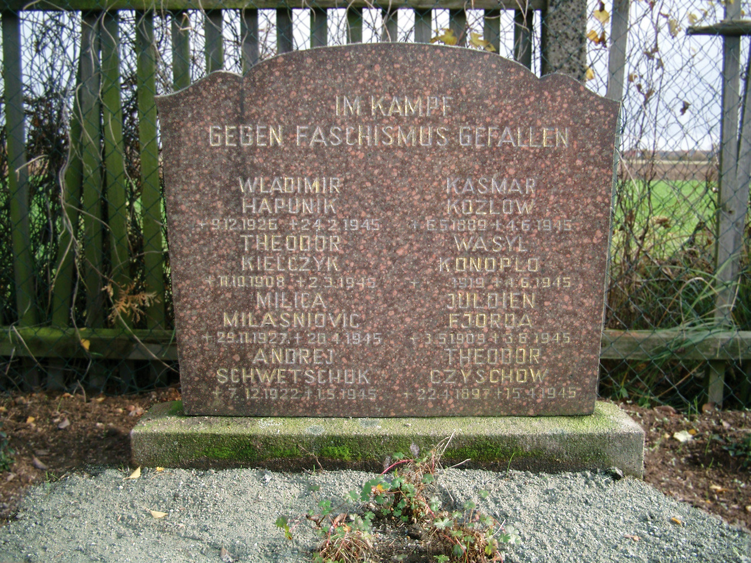Die Stadt Leipzig ist Sitz des gleichnamigen Regierungsbezirks. Sie liegt im Nordwesten Sachsens und hat über 500 000 Einwohner. Im hinteren Bereich des Friedhofs von Böhlitz-Ehrenberg befindet sich ein Sammelgrab, in dem neben Toten aus Polen und Kroatien auch sechs Zivilisten aus der ehemaligen Sowjetunion ruhen. Sie alle waren Zwangsarbeiter, die in Rüstungsbetrieben der Gegend arbeiten mussten. Nähere Einzelheiten über das Leben dieser Menschen und die Umstände ihres Todes sind zur Zeit nicht bekannt. Zu Ehren dieser Toten hat man ihnen nach dem Krieg einen gemeinsamen Gedenkstein gesetzt. In das Denkmal aus rotem Granit sind ihre Namen und Lebensdaten mit goldenen Lettern eingraviert.