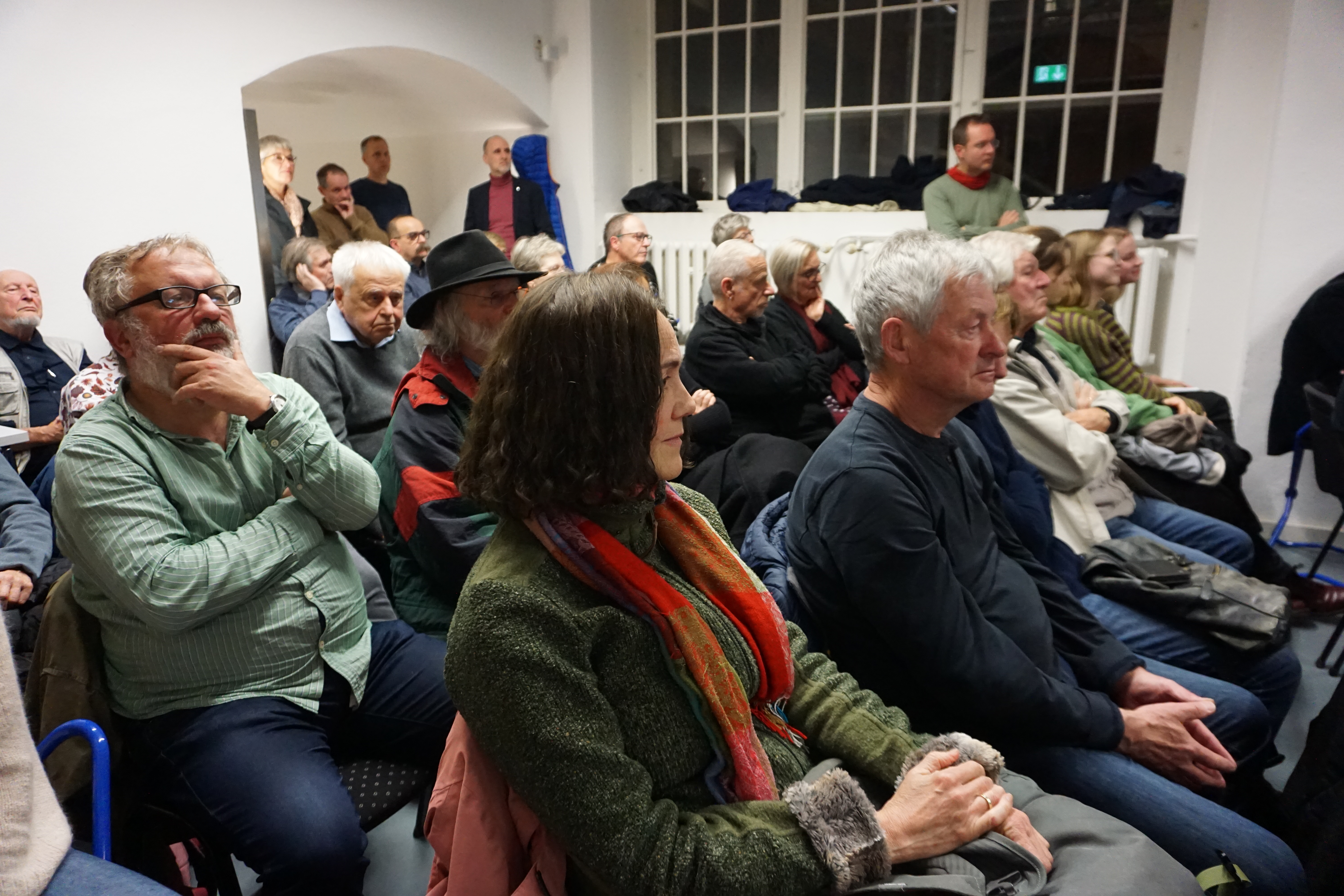 Kurz vor Veranstaltungsbeginn am Abend des 13. November 2025 wurden noch eilig Klappstühle herangeschafft. Noch den letzten Winkel des Veranstaltungsraum der Gedenkstätte belegten die rund 80 Besucherinnen und Besucher. Gedenkstättenleiterin Dr. Birgit Sack zeigte sich bei ihrer Begrüßung „überwältigt vom großen Zuspruch“. Die Vermutung des Podiumsgastes Ralf Pasch, dass die meisten im Saal auch aufgrund der eigenen Familiengeschichte gekommen waren, bestätigte sich, als er in den Saal rief: „Wer hat einen Vertriebenen- oder Flüchtlingshintergrund?“ Zwei Drittel der Hände gingen hoch. Die „Erben der Vertreibung“ saßen nicht nur vorne in der Diskussionsrunde – sondern auch im Publikum.