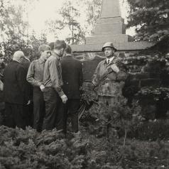 Bad Schlema ist ein Kurort mit rund 5 500 Einwohnern in der Nähe von Aue-Schwarzenberg, 40 km südwestlich von Chemnitz. Auf einer Waldlichtung am Kohlweg befindet sich eine Gedenkstätte, die an das Schicksal von 83 KZ-Häftlingen sowie 18 sowjetischen Kriegsgefangenen erinnert. Die Häftlinge kamen bei der Evakuierung des Außenlagers Mülsen St. Micheln des KZ Flossen bürg am 27. April 1945 nach Schlema. Hier erschossen Wachmannschaften die 83 Schwächsten unter ihnen. Am Abend desselben Tages wurden in Schlema auch 18 sowjetische Kriegsgefangene umgebracht und notdürftig in Sammelgräbern beerdigt. 1945 errichtete man ihnen zu Ehren an den Gräbern diese Gedenkstätte (1), die im Jahr 1972 durch Kurt Teubner ihre heutige Form erhielt (2).