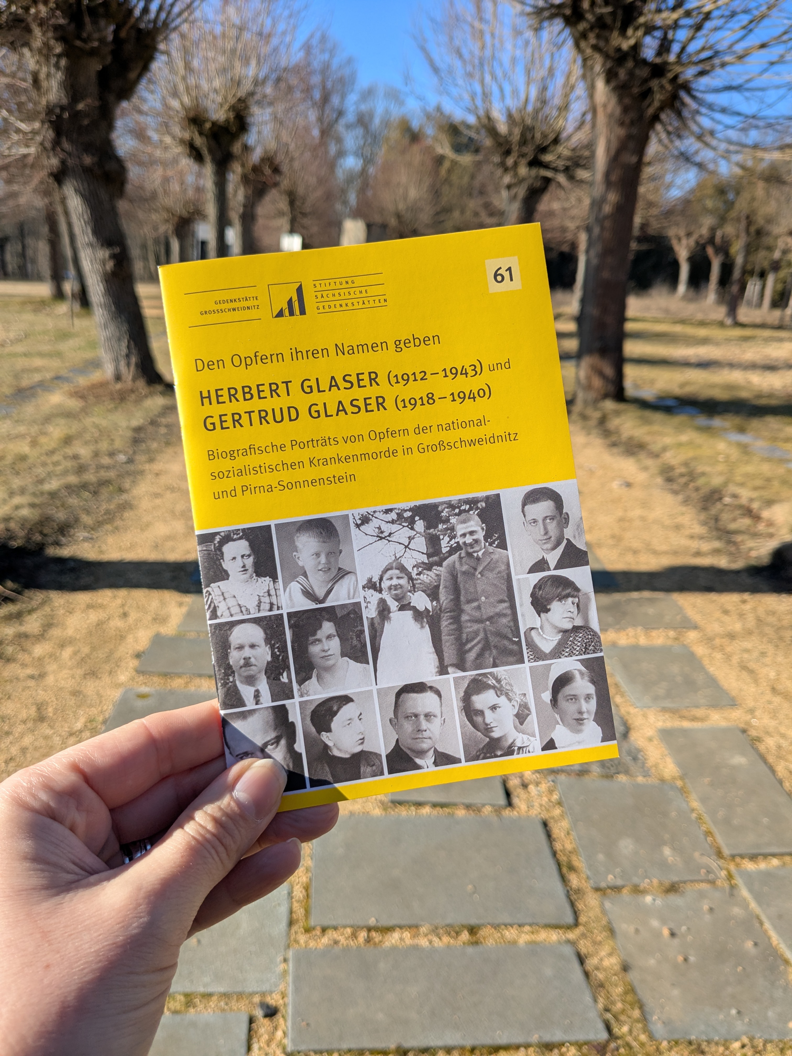 Auch Gertrud Glasers Leben endete in Pirna-Sonnenstein. Mit acht Jahren war sie in den Katharinenhof Großhennersdorf gekommen, wo bereits ihr Bruder Herbert lebte. Beide blieben auch als Erwachsene in dieser Einrichtung, weil sie im Anstaltsbetrieb nützliche Aufgaben übernahmen. Nach außen hin galten sie jedoch als „nutzlos“ und minderwertig, wie der Propagandafilm „Erbkrank“ zeigen sollte. Beide Geschwister sind in diesem zu sehen. Als im Herbst 1940 der Katharinenhof aufgelöst wurde, kam Gertrud Glaser nach Großschweidnitz, wo sie bereits wenige Tage später nach Pirna-Sonnenstein verlegt und dort ermordet wurde. Ihr Bruder Herbert kam im Juli 1943 nach Großschweidnitz, wo er noch im gleichen Jahr ermordet wurde.