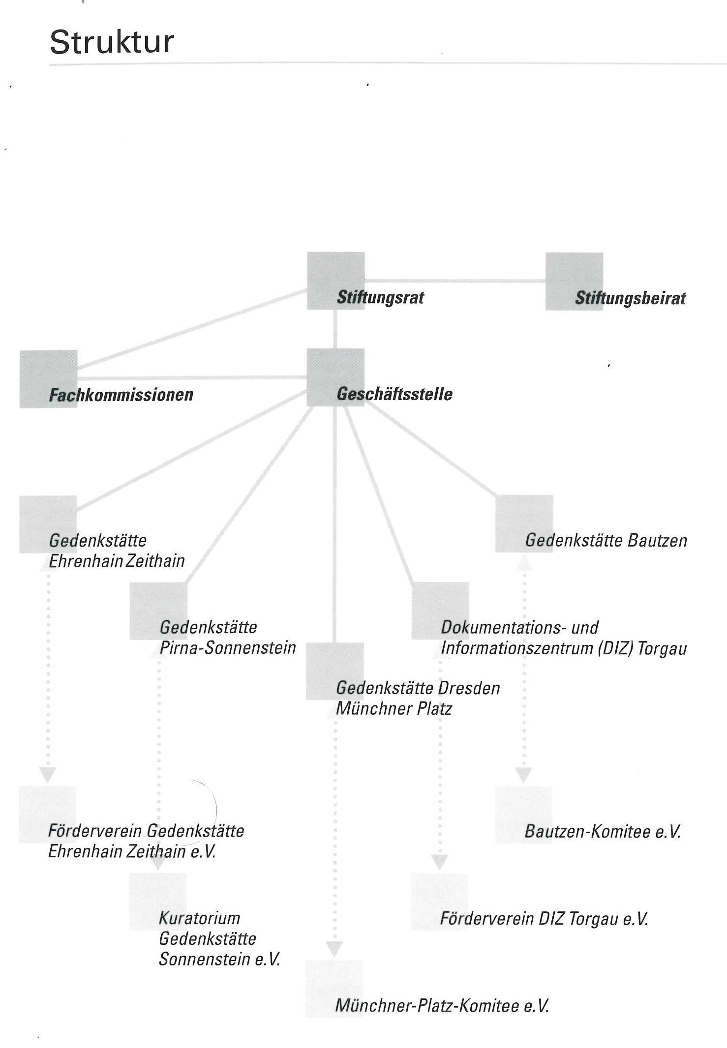 In Bautzen, Pirna, Torgau, Dresden und Zeithain wurden Gedenkstätten aufgebaut, die mit der per Kabinettsbeschluss herbeigeführten Gründung der Stiftung Sächsische Gedenkstätten 1994 einen Dachverband erhielten, der den dauerhaften Betrieb und die Weiterentwicklung der Gedenkstätten ermöglichen sollte. Die Stiftung entwickelte diese Stätten zu Orten der historisch-politischen Bildung und demokratischen Wertevermittlung. Auf der Stiftungsratssitzung vom 9. Januar 1995 wurde die Wahl des Geschäftsführers der Stiftung und die Bestätigung des ersten Jahreshaushaltes beschlossen und über den – ursprünglich in Pirna vorgesehenen – Sitz der Stiftungsgeschäftsstelle beraten.