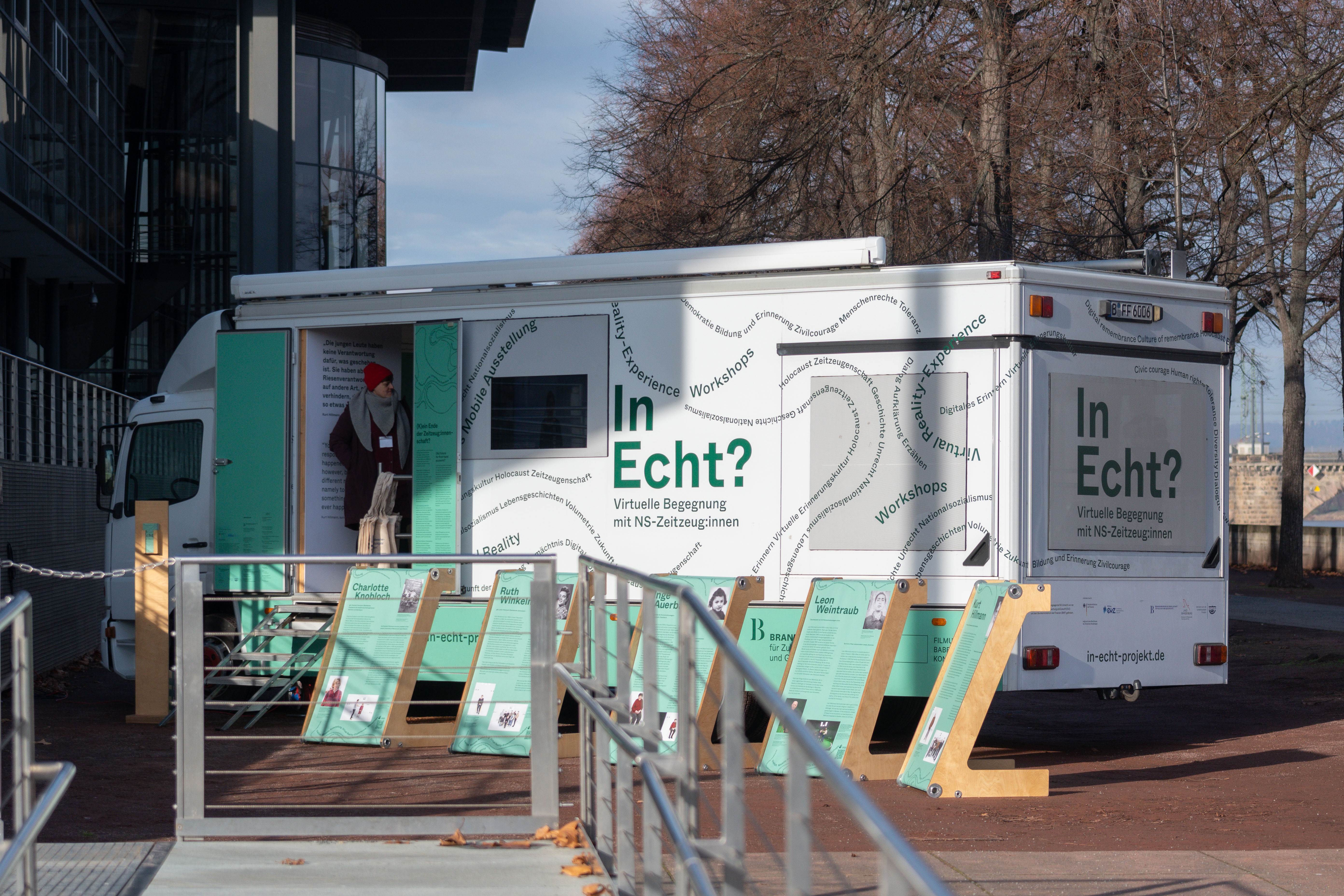 Am 27. und 28. November 2025 fanden die 21. Sächsischen Jugendgeschichtstage im Sächsischen Landtag statt – und die Stiftung Sächsische Gedenkstätten war wieder mit dabei! In diesem Jahr konnte die Stiftung die mobile Ausstellung „In Echt? – Virtuelle Begegnung mit NS-Zeitzeug:innen“ des Brandenburg Museums für Zukunft, Gegenwart und Geschichte in Kooperation mit der Sächsischen Jugendstiftung ermöglichten präsentieren. Die Ausstellung, die den Teilnehmenden eine virtuelle Begegnung mit fünf Holocaust-Überlebenden ermöglichte, stieß auf großes Interesse und regte zu intensiven Gesprächen und Reflexionen an.