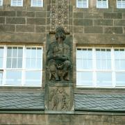 Ein schlangenhaariges Frauengesicht – ein Mann, der auf einem Thron an der Fassade sitzt – ein weinender Apostel: Das sind nur einige Spuren aus der Geschichte des ehemaligen Justizkomplexes am Münchner Platz.