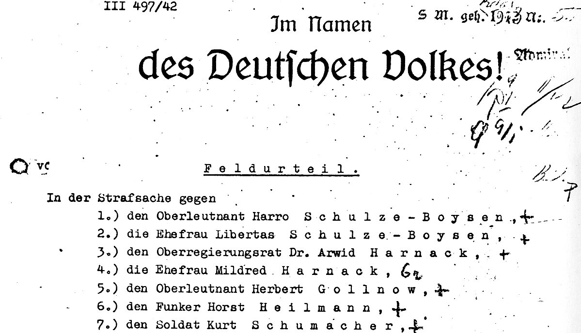 Im Herbst 1942 verhaftete die Gestapo etwa 130 Mitglieder der „Roten Kapelle“. Fast 50 von ihnen verurteilte das Reichskriegsgericht zum Tode: 19 Frauen und 30 Männer. Sie wurden in Berlin-Plötzensee hingerichtet. Adolf Hitler hatte sämtliche Gnadengesuche abgelehnt.