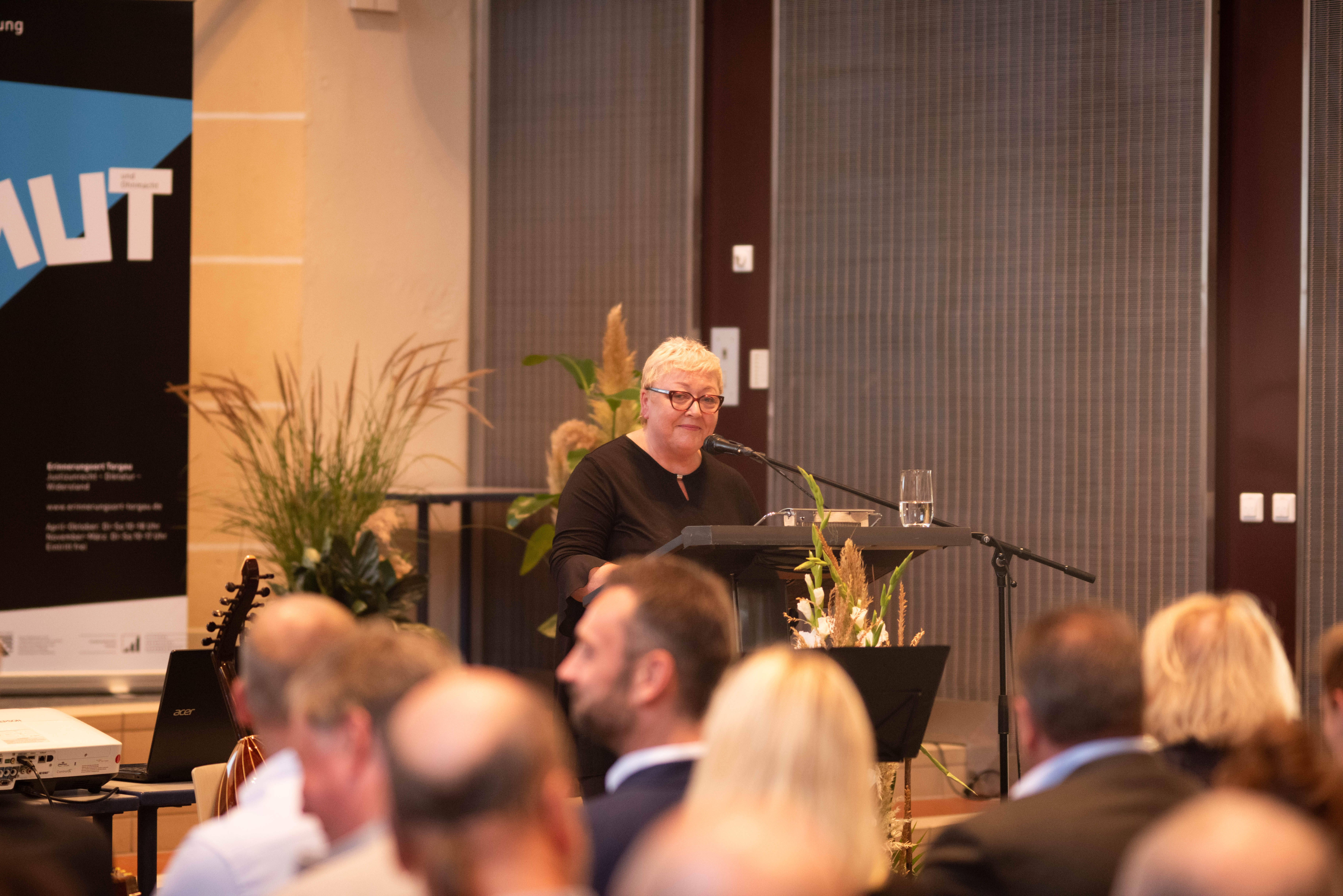 Die Gedenkstätte sei aber nicht nur ein Ort, um an das vergangene Unrecht zu erinnern, sondern zeige gleichzeitig die Bedeutung von Zivilcourage und Engagement gegen Diskriminierung und politische Verfolgung in der Gegenwart. Barbara Klepsch stellte zudem die thematische Besonderheit der neuen Ausstellung in den Mittelpunkt: Nirgendwo sonst könne die Geschichte der NS-Militärjustiz im Zweiten Weltkrieg so umfassend erzählt werden wie am Erinnerungsort Torgau. Dass die Ausstellung im Kontext des 85. Jahrestages des Überfalls der deutschen Wehrmacht auf Polen eröffnet wurde, sei daher genau passend.