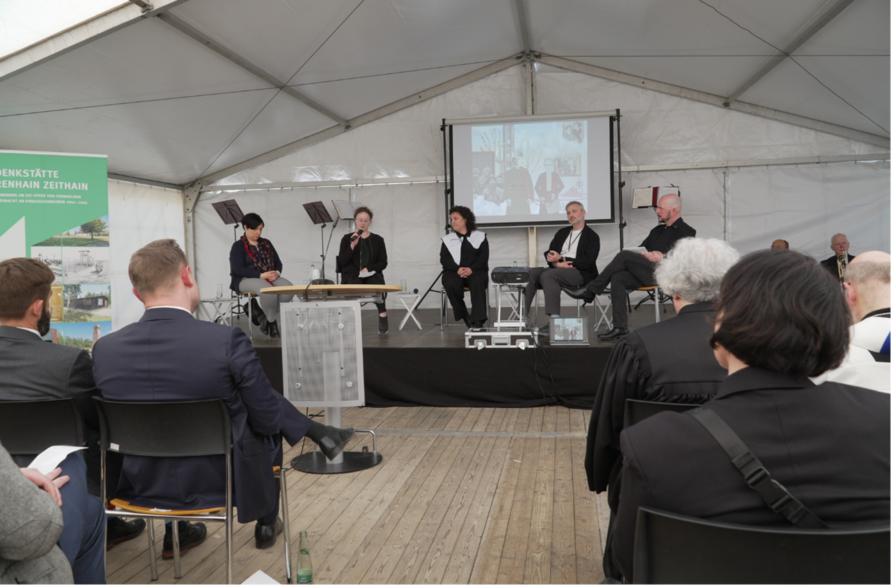 Neben offiziellen Vertretern aus der Ukraine, aus Polen und Italien nahm der Präsident des Sächsischen Landtages, Alexander Dierks, an der Feierlichkeit teil. In seinem Grußwort lobte Dierks ausdrücklich den „lebendigen Austausch“, der in Zeithain jedes Jahr aufs Neue zwischen den Angehörigen der Opfer und der Zivilgesellschaft entstehe. Dieser Dialog sei ein unverzichtbarer Pfeiler der sächsischen Erinnerungskultur.